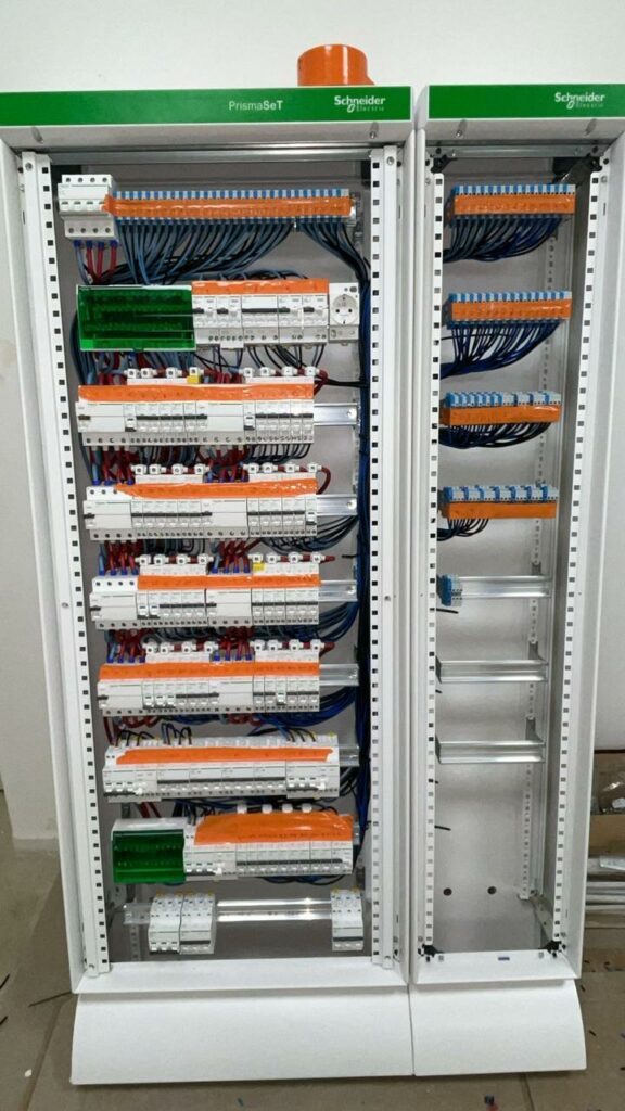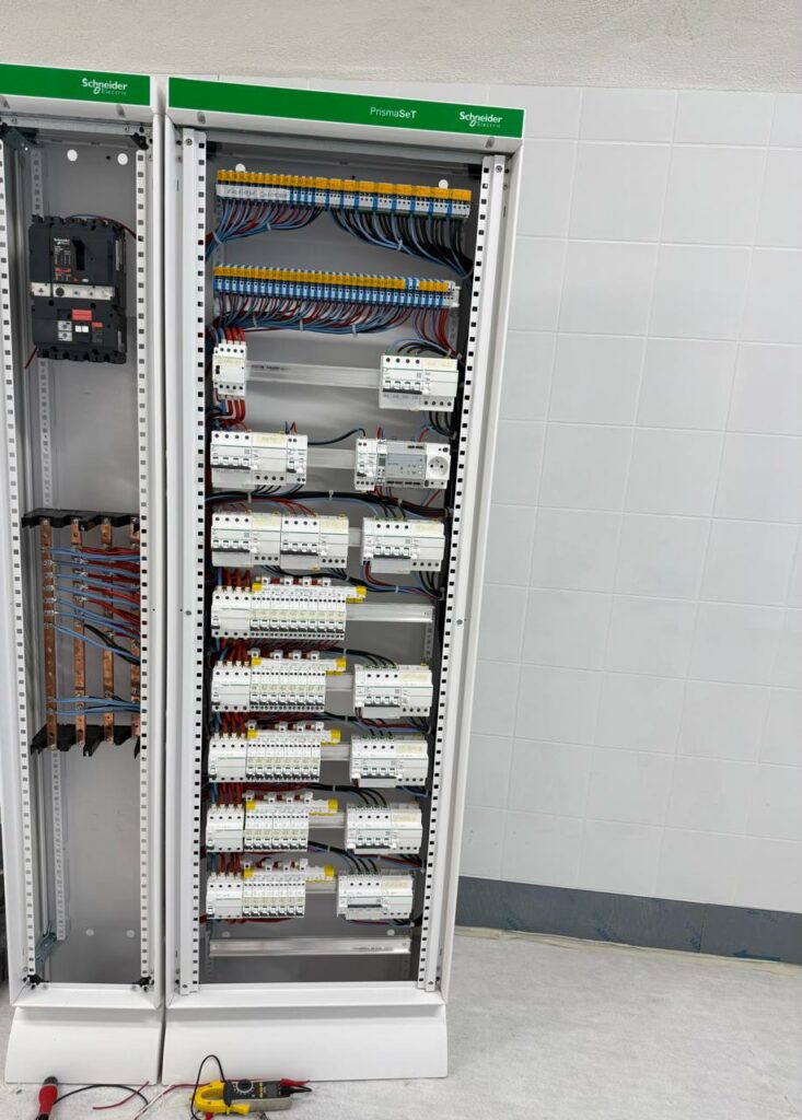 - Montage professionnel des composants : intégration des TGBT, coffrets tertiaires et tableaux de distribution